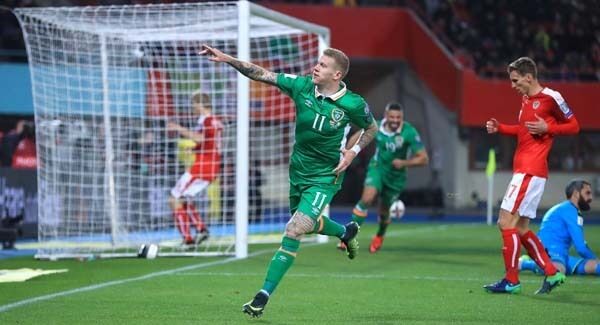 Following the concession of a couple of early corner kicks, Marc Janko gains possession from a David Alaba in-swinger, turns Shane Duffy and fires a shot that requires Darren Randolph to make a smart stop.