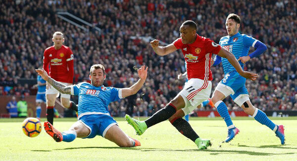 An outstanding touch from eccentric goalkeeper Boruc prevented Pogba turning home a long ball from Luke Shaw, making his first league appearance in four months, before Anthony Martial was denied a trademark goal.