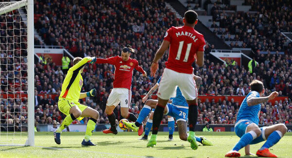 A minute later United had the chance to strike a decisive blow as Smith was adjudged to have handled a Pogba cutback. Ibrahimovic stepped up for the spot kick, only to be denied by a fine Boruc save low to the keeper's right.