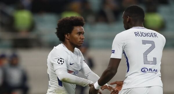 The Blues' task was made simpler by the 19th-minute red card for home defender Rashad Sadygov, who was sent off for pulling down Willian in the box. Eden Hazard calmly tucked away the penalty.