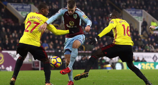 The Hornets had Marvin Zeegelaar sent off for a studs-up challenge on Steven Defour and Scott Arfield’s neat finish right on half-time was enough to clinch the result forBurnley.