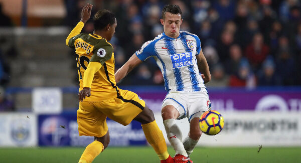 Huddersfield moved level on points with 10th-placed Everton after a 2-0 win over Brighton.