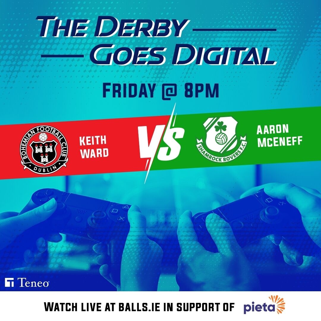 - Bohemiansā Keith Ward will face Aaron McEneff of Shamrock Rovers in FIFA 2020 for the first-ever virtual #DublinDerby at 8pm on April 24. The event, in aid of Pieta House, and produced by Teneo, will be streamed live on Balls.ie. You can donate here.