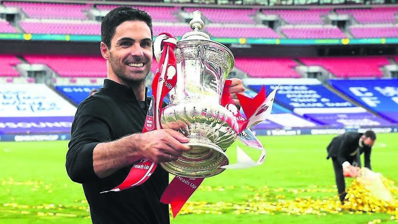 Arsenal manager Mikel Arteta celebrates their victory with the FA Cup trophy during the Heads Up FA Cup final match at Wembley Stadium last month. Picture: Catherine Ivill/NMC Pool/PA Wire