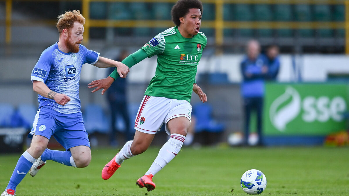 Kit Elliott of Cork City in action against Ryan Connolly of Finn Harps during the SSE Airtricity League Premier Division match. Picture: Eóin Noonan/Sportsfile