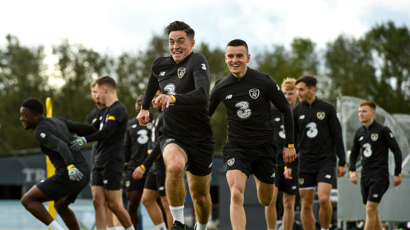 Conor Coventry and Darragh Leahy during a Republic of Ireland U21 training session at Johnstown House in Enfield, Meath. Picture: Matt Browne/Sportsfile