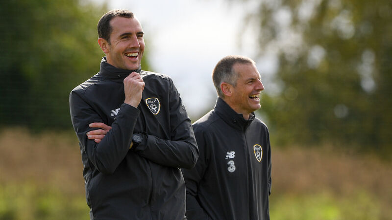 Assistant manager John O'Shea with manager Jim Crawford during a Republic of Ireland U21's training session at Johnstown House in Meath. Photo by Matt Browne/Sportsfile