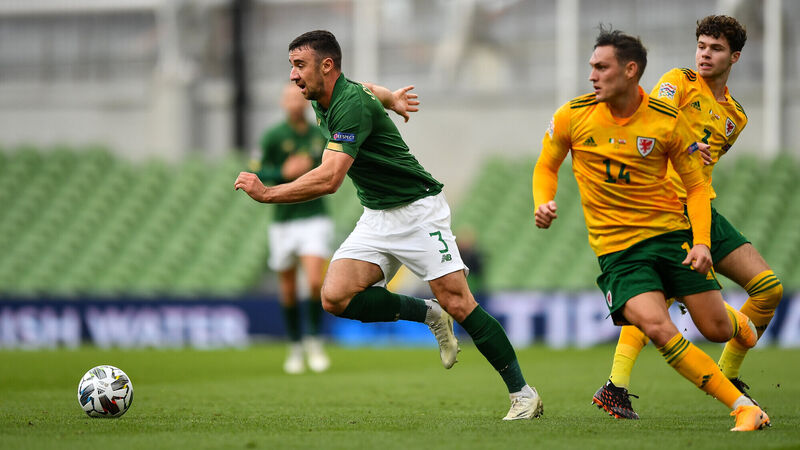 Enda Stevens of Republic of Ireland in action against Connor Roberts and Neco Williams of Wales during the Nations League stalemate. Picture: Seb Daly/Sportsfile