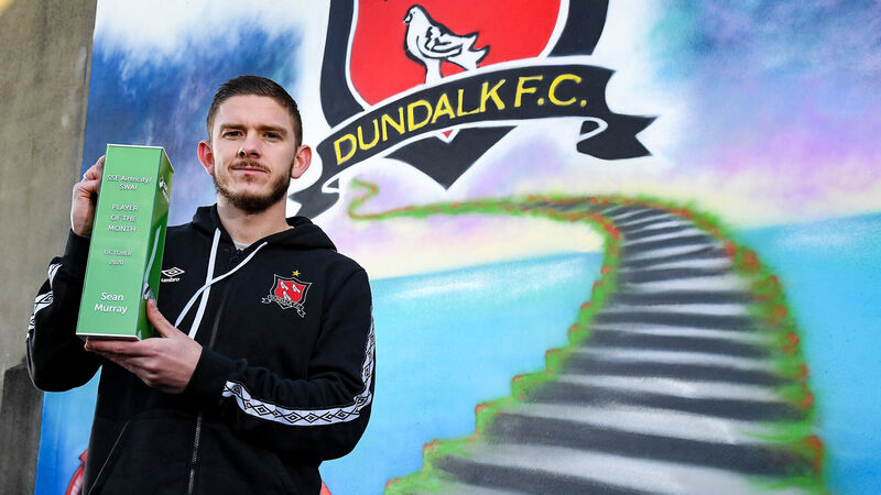 Sean Murray of Dundalk with his SSE Airtricity SWAI Player of the Month Award for October 2020 at Oriel Park. Picture: Matt Browne/Sportsfile