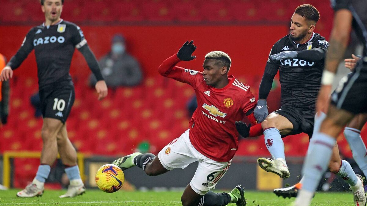Manchester United's French midfielder Paul Pogba is fouled for a penalty by Aston Villa's Brazilian midfielder Douglas Luiz during the Premier League clash. Picture: Carl Recine.