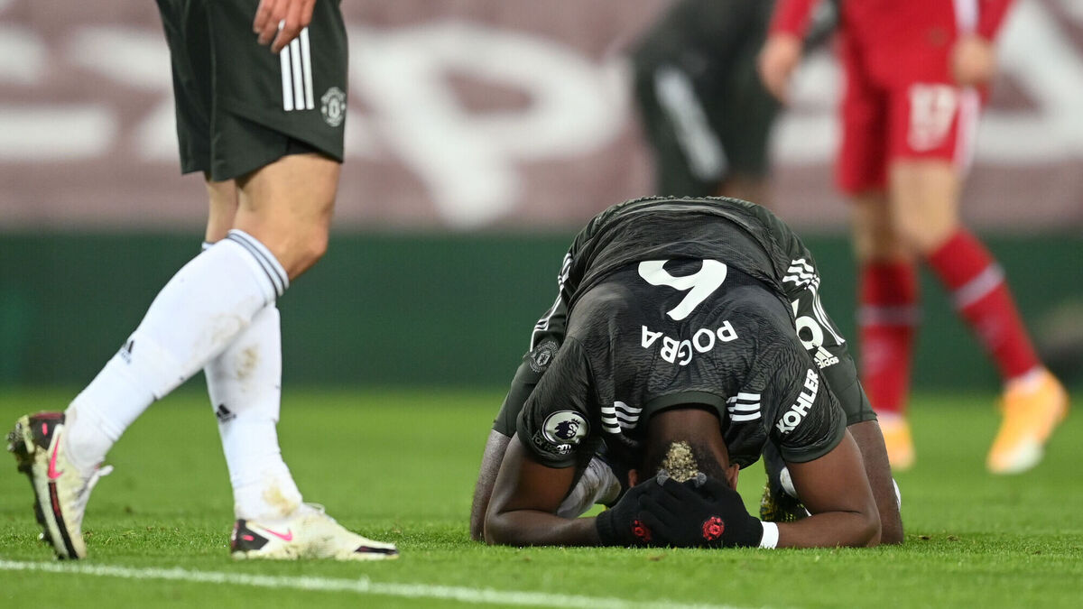 Manchester United's Paul Pogba reacts after a missed chance during the Premier League match at Anfield. Picture: Michael Regan