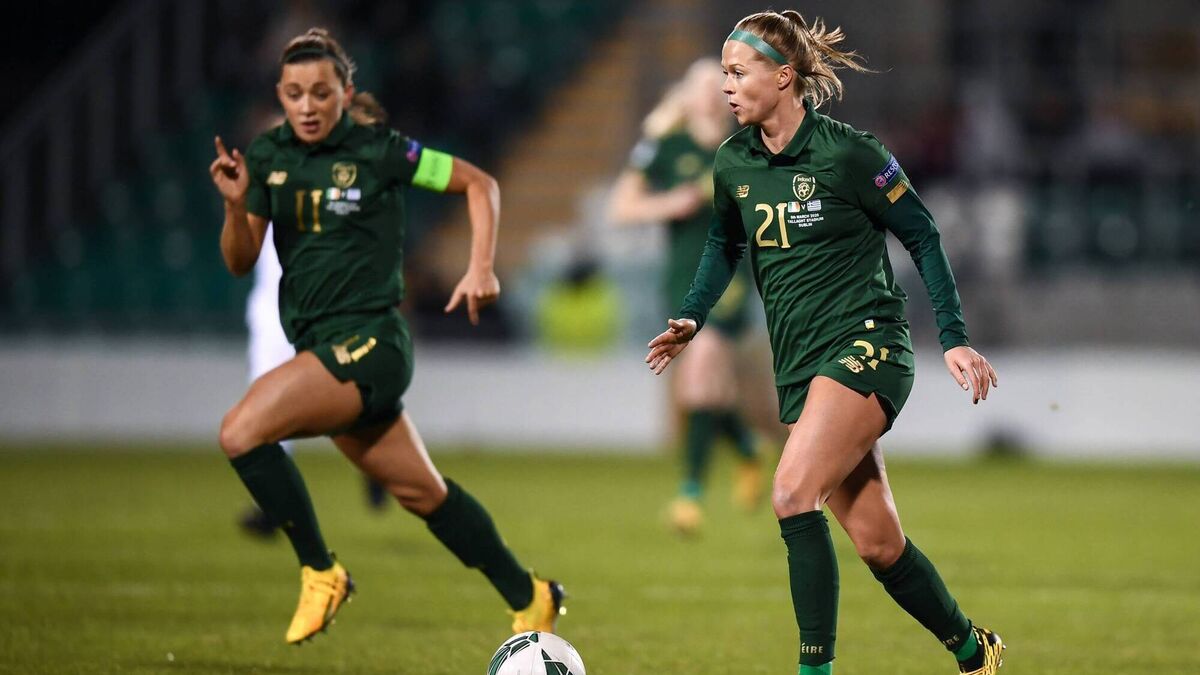 Ruesha Littlejohn, right, in action for Ireland in a UEFA Women's 2021 European Championships qualifier. Littlejohn has joined Birmingham City until the end of the season