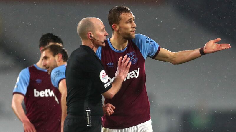 West Ham manager David Moyes described as “embarrassing” the red card shown by referee Mike Dean to Tomas Soucek in added time at the end of a dreary London derby at rainswept Craven Cottage. And he called on referees to take a stand against over-zealous applications of the laws of the game.