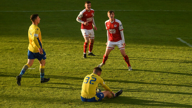 Chris Forrester of St Patrick's Athletic celebrates after scoring his side's third goal of the comfortable win over Longford Town. Picture: Eóin Noonan/Sportsfile