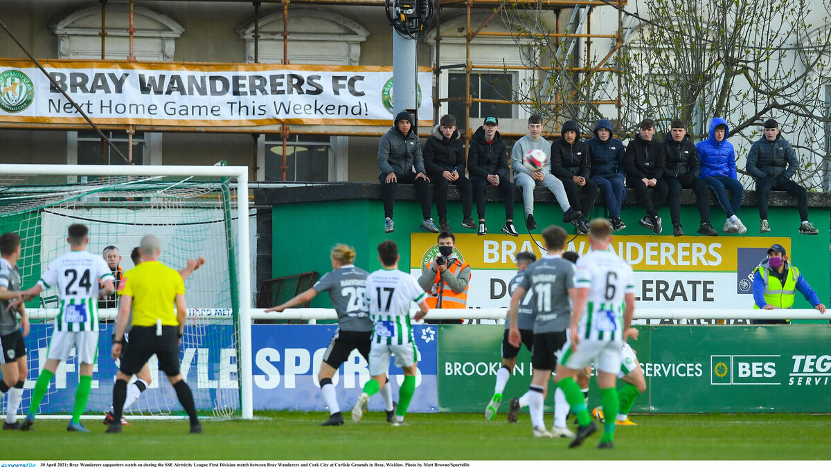 Bray Wanderers supporters watch on during the SSE Airtricity League First Division match against Cork City. Picture: Matt Browne