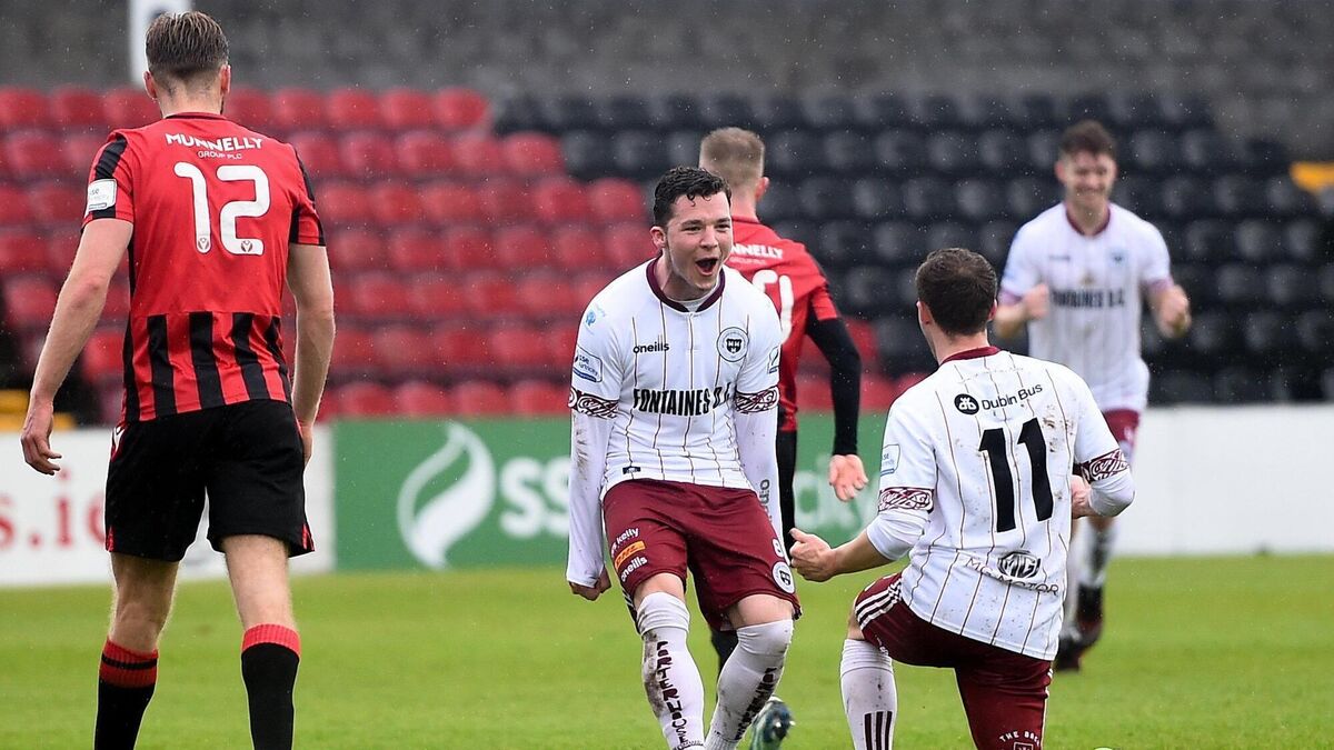 DOUBLE ACT: Bohs' Liam Burt celebrates with Ali Coote after scoring the opening goal at Bishopsgate.