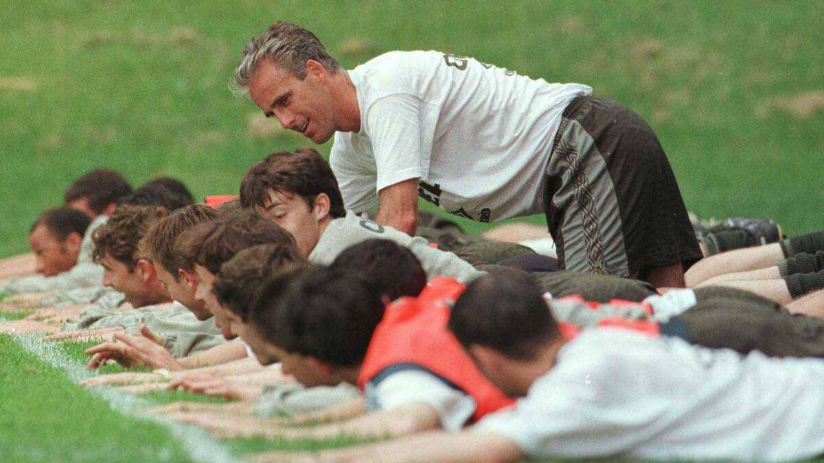 xx Republic of Ireland US Tour 1996 Mick McCarthy during an Irish training session Pic. Billy Stickland / INPHO