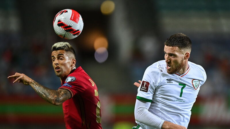 Matt Doherty of Republic of Ireland in action against João Cancelo of Portugal. Picture: Seb Daly/Sportsfile