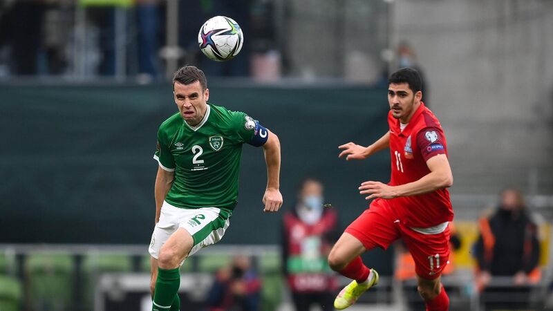 4 September 2021; Seamus Coleman of Republic of Ireland in action against Ramil Sheydaev of Azerbaijan during the FIFA World Cup 2022 qualifying group A match between Republic of Ireland and Azerbaijan at the Aviva Stadium in Dublin. Photo by Stephen McCarthy/Sportsfile