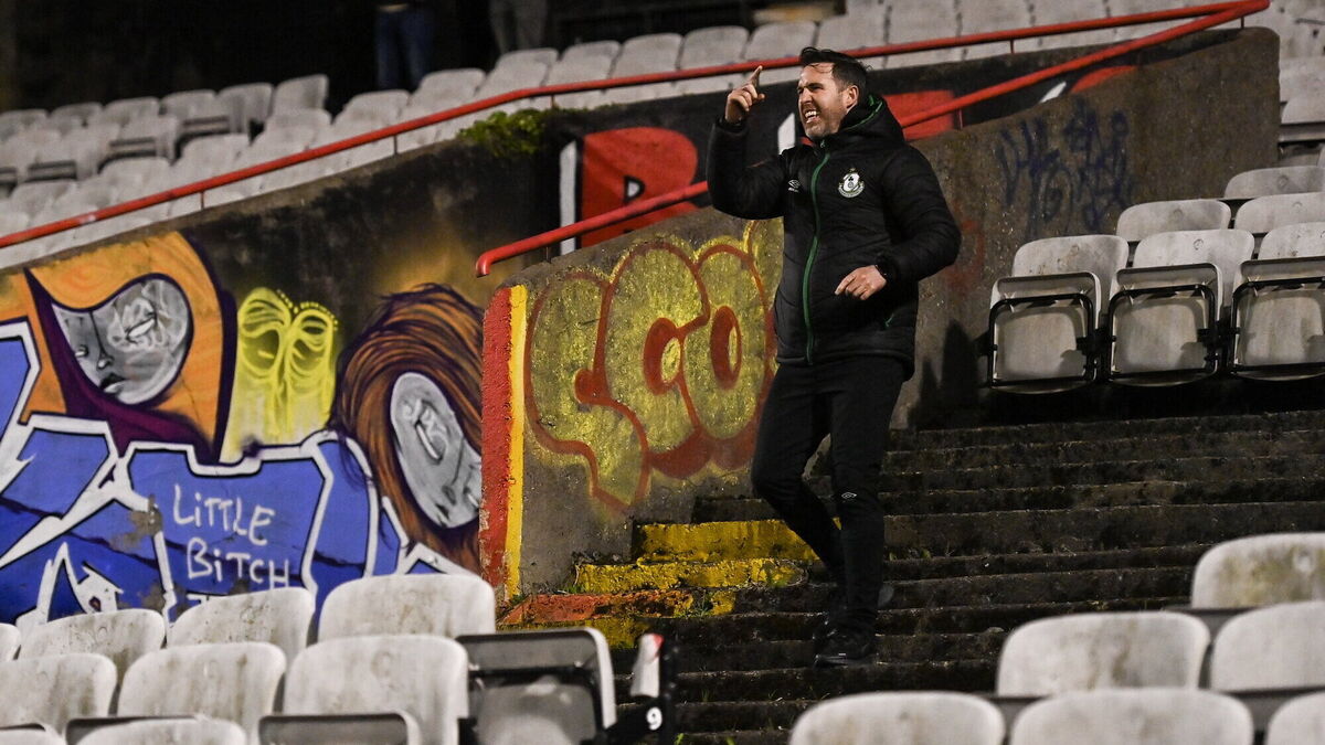 Shamrock Rovers manager Stephen Bradley watches on from the stands after being shown a red card during the SSE Airtricity League Premier Division match between Bohemians and Shamrock Rovers at Dalymount Park in Dublin. Photo by Ramsey Cardy/Sportsfile