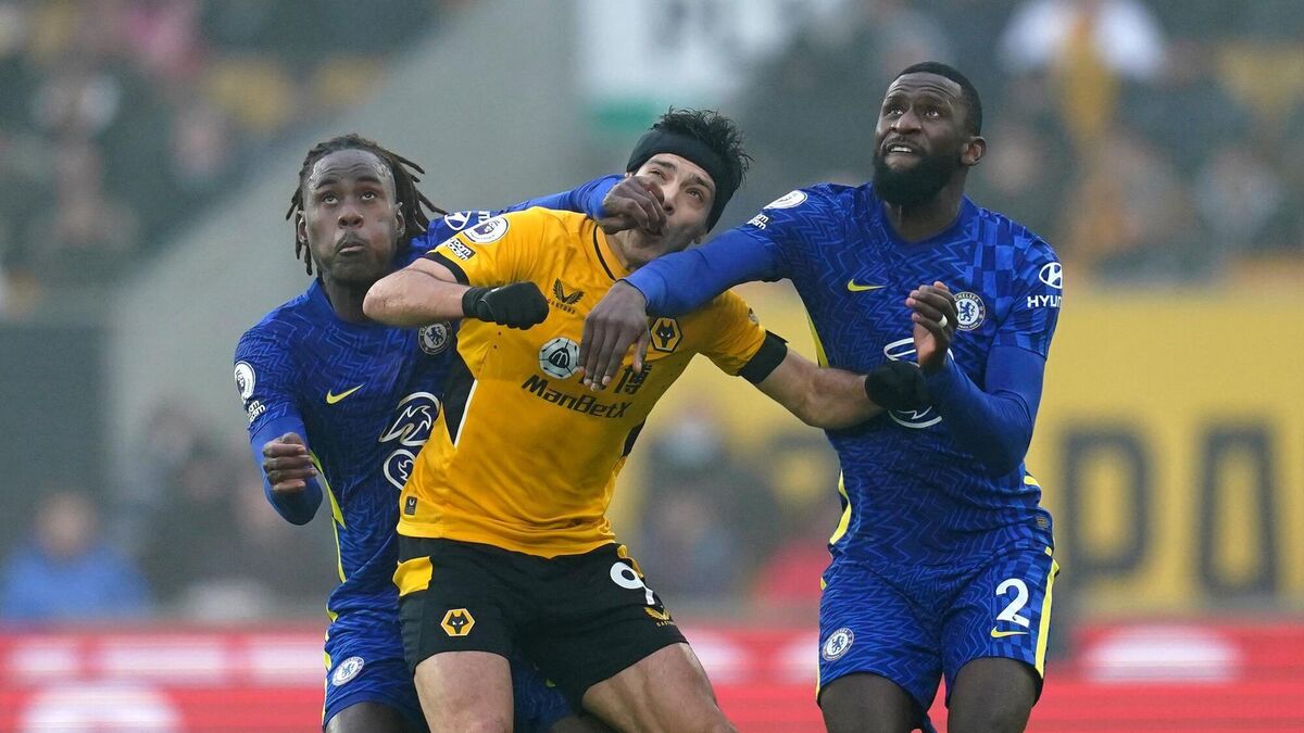 Wolverhampton Wanderers' Raul Jimenez and Chelsea's Antonio Rudiger battle for the ball during the Premier League match at Molineux Stadium