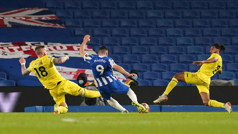 Neal Maupay netted Brighton’s second against his former club (Gareth Fuller/PA)