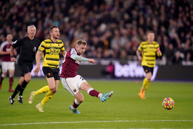 West Ham should have gone ahead shortly before half-time when Bowenâs clever reverse pass found Said Benrahma eight yards out. After Benrahmaâs initial shot was blocked by Hornets keeper Ben Foster, the Algeria international crashed the rebound against the outside of the post.