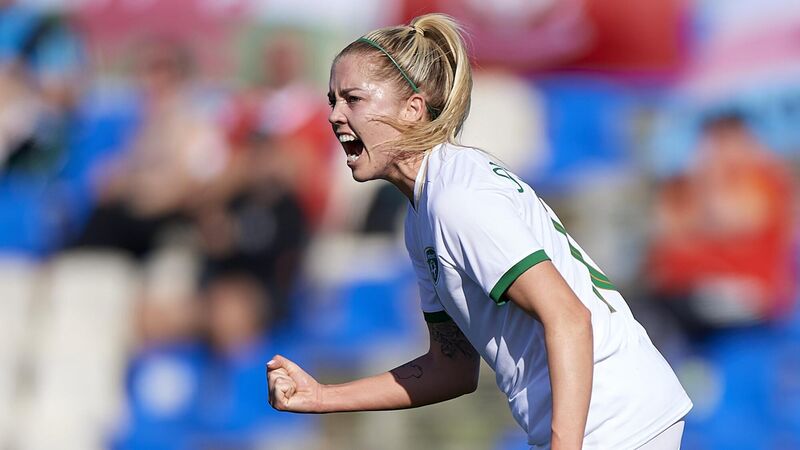 Ireland's Denise O'Sullivan celebrates scoring Ireland's goal during the Pinatar Cup Third Place Play-off match against Wales at La Manga in Murcia, Spain. Picture: Silvestre Szpylma/Sportsfile