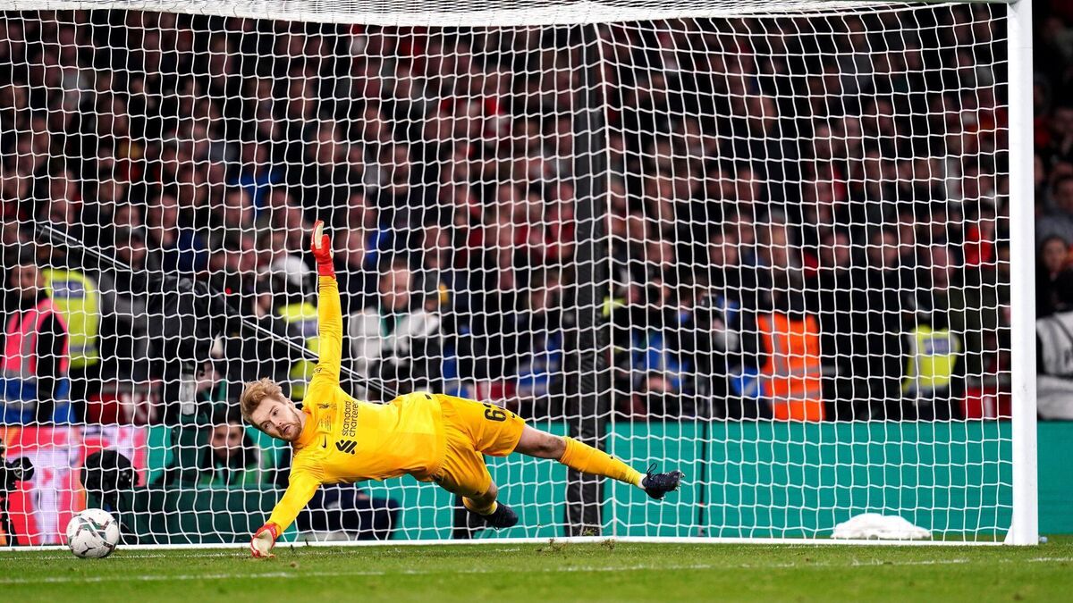 Liverpool's Caoimhin Kelleher makes a save during the Carabao Cup final at Wembley Stadium, London. Picture date: Sunday 27th February, 2022. PA Photo. Photo John Walton/PA Wire
