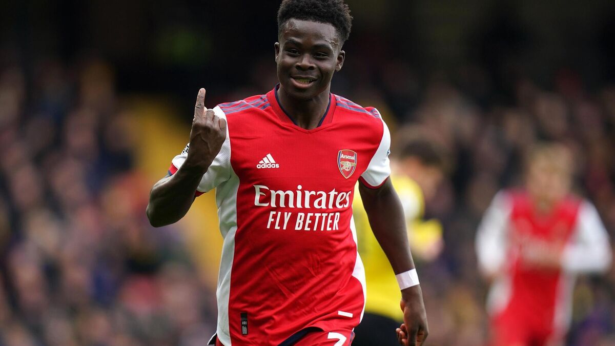 Arsenal's Bukayo Saka celebrates scoring their side's second goal of the game during the Premier League match at Vicarage Road, Watford. Picture: Adam Davy/PA WireÂ