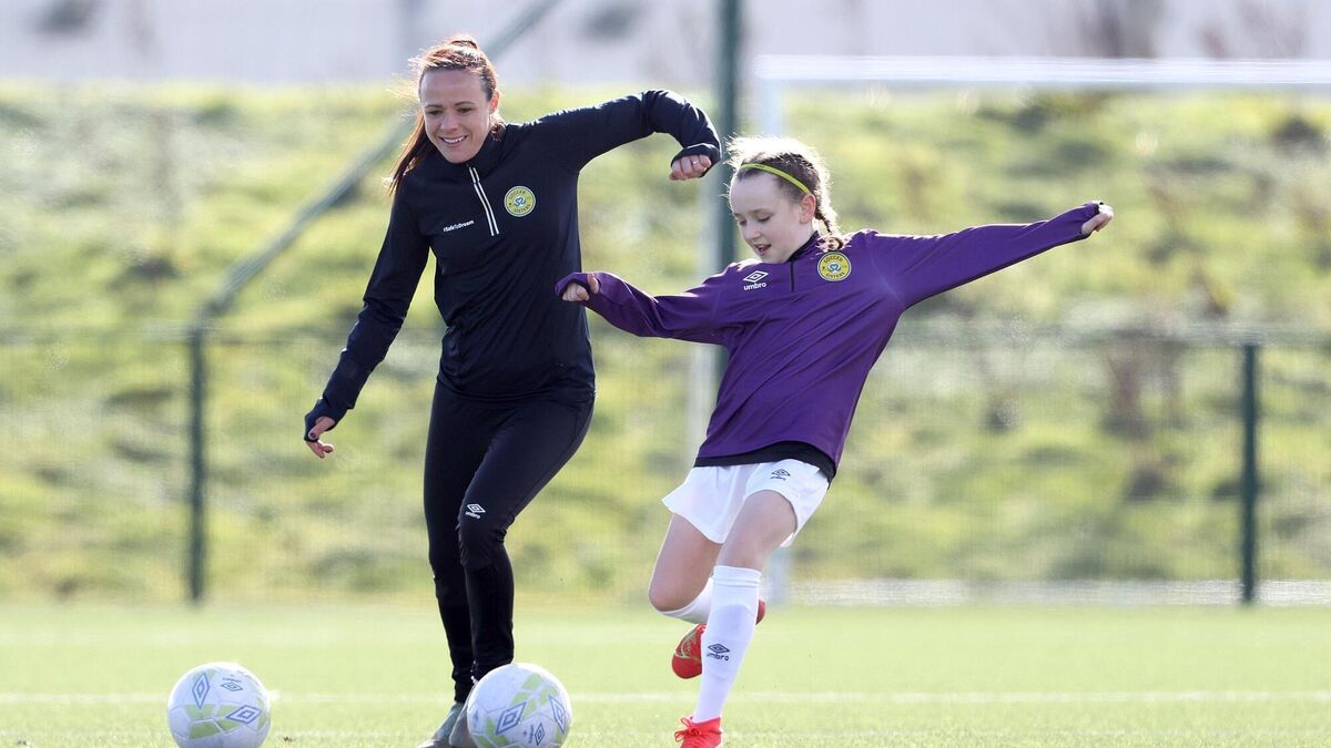Áine O’Gorman and Layla Cranston of Peamount United FC at the launch of this year’s Aviva Soccer Sisters Easter Camps. The three-day camps, open to all girls aged 6 to 14, will get underway from April 12th. Registrations for this year’s Aviva Soccer Sisters Easter Camps will open at 2pm on Monday and can be accessed via www.aviva.ie/soccersisters. Picture: inpho/Dan Sheridan