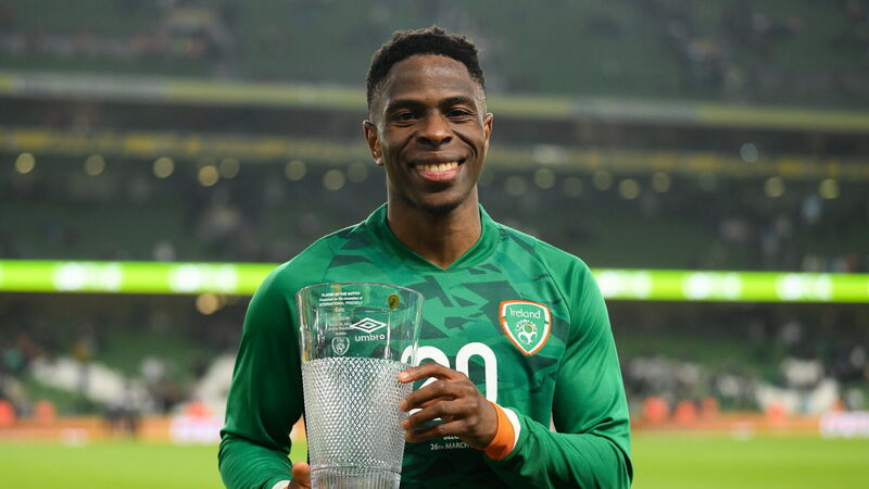 26 March 2022; Player of the match Chiedozie Ogbene of Republic of Ireland after the international friendly match between Republic of Ireland and Belgium at the Aviva Stadium in Dublin. Photo by Stephen McCarthy/Sportsfile