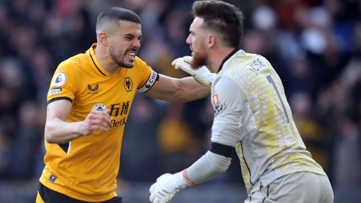 Wolverhampton Wanderers' Conor Coady celebrates victory with Pedro Jose Sa (right) following the Premier League match at the Molineux Stadium, Wolverhampton. Picture: Isaac Parkin/PA WireÂ