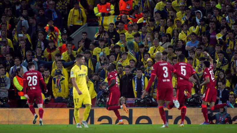 Liverpool's Sadio Mane celebrates scoring their side's second goal of the game during the UEFA Champions League semi final, first leg match at Anfield, Liverpool. Photo credit should read: Peter Byrne/PA Wire.