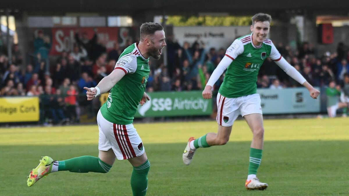 The opener: Cork City's Kevin O'Connor celebrates his goal with Matt Healy during the SSE Airtricity First Division game against Wexford at Turner's Cross. Pic: Eddie O'Hare