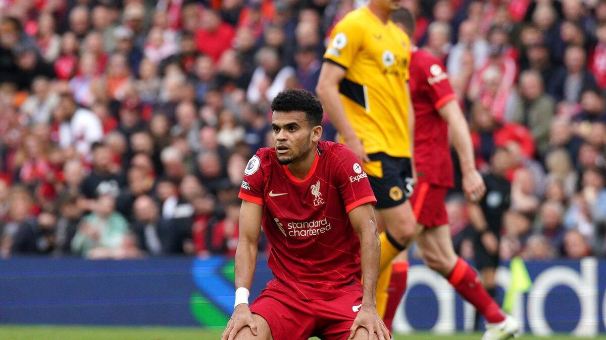 Liverpool's Luis Diaz looks dejected during the Premier League match at Anfield, Liverpool. Peter Byrne/PA Wire.