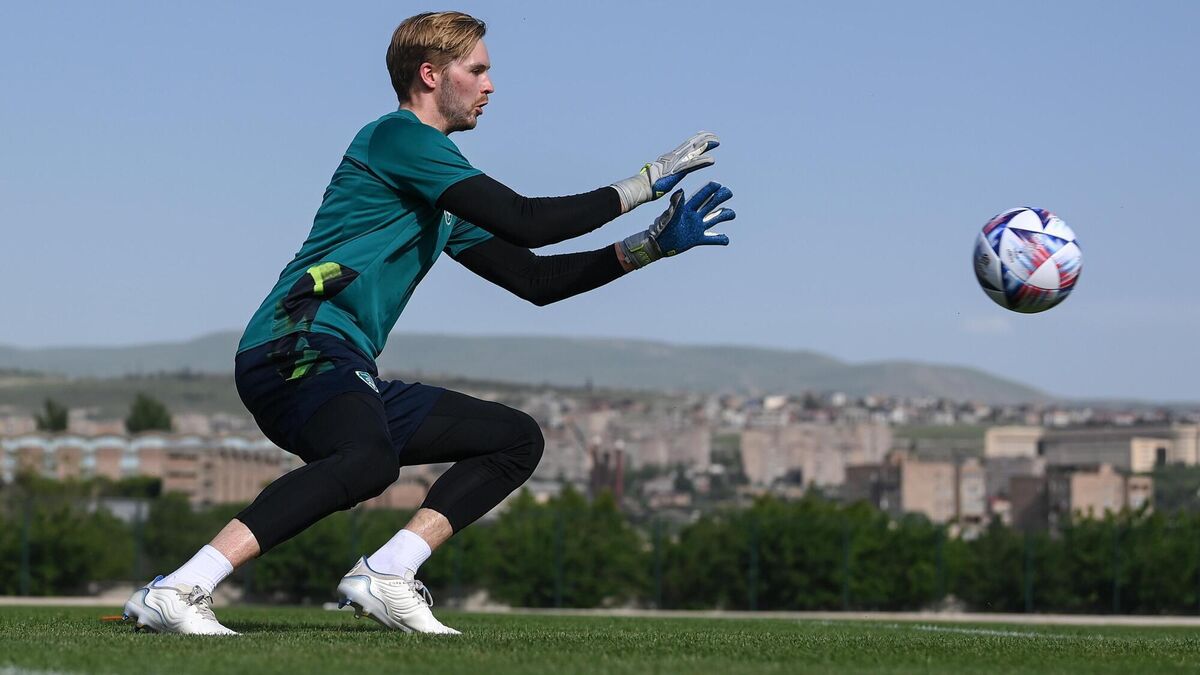 Goalkeeper Caoimhin Kelleher during a Republic of Ireland training session