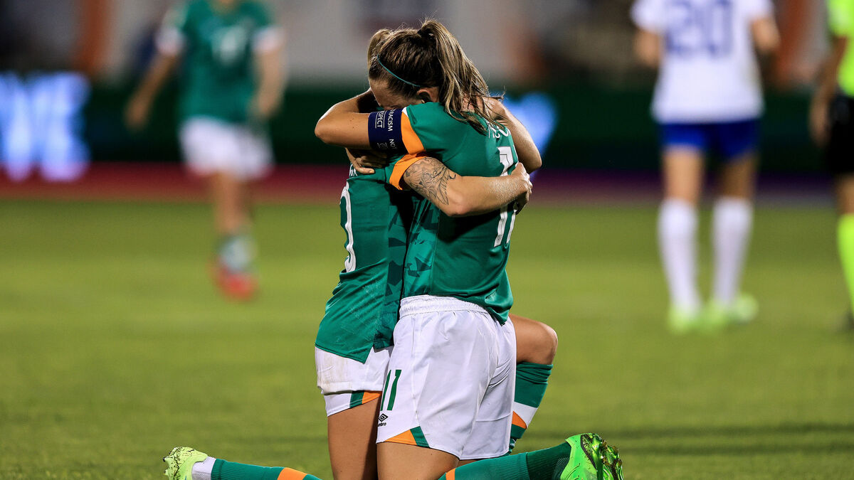 EMBRACEABLE YOU: Ireland’s Katie McCabe and Denise O'Sullivan celebrate at the final whistle