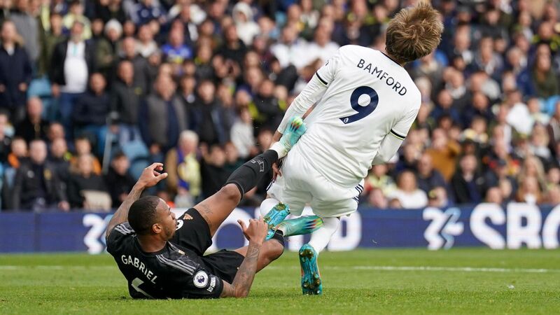 Then deep into stoppage time referee Chris Kavanagh controversially reversed his initial decision to point to the spot as Gabriel Magalhaes earned a red card for kicking out at the England forward, instead reprieving the Arsenal defender who had been fouled by Bamford, to ensure the Gunners held on for a ninth win in 10 games to extend their advantage over Manchester City at the summit.