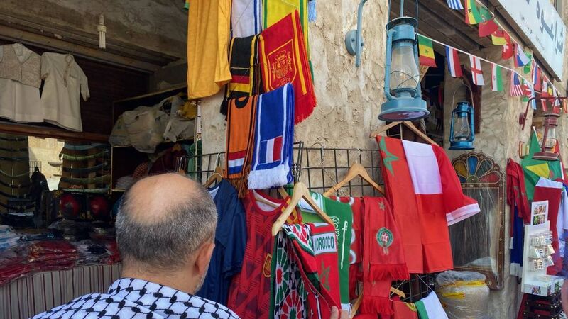 SOLE FOCUS: Morocco scarves hang on the streets of Qatar.
