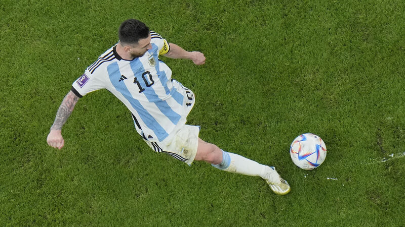MESSI MAGIC: Lionel Messi shoots a free kick during the World Cup quarterfinal soccer match between the Netherlands and Argentina. Pic: AP Photo/Hassan Ammar