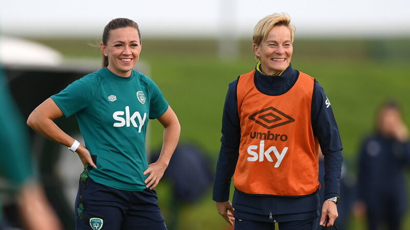 BASE: Manager Vera Pauw and Katie McCabe during a Republic of Ireland training session. Picture: Stephen McCarthy/Sportsfile