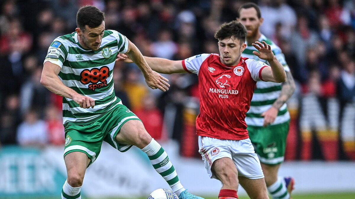 Aaron Greene of Shamrock Rovers under pressure from Adam O'Reilly, who has been released by Preston North End. Picture: Piaras Ó Mídheach/Sportsfile