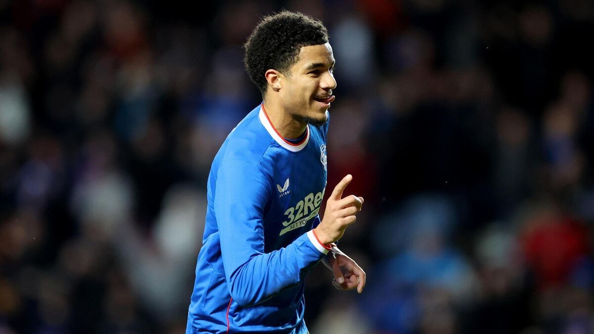 THREE AND EASY: Rangers' Malik Tillman celebrates scoring their side's third goal of the game during the cinch Premiership match at Ibrox Stadium, Glasgow. Pic: Steve Welsh/PA Wire