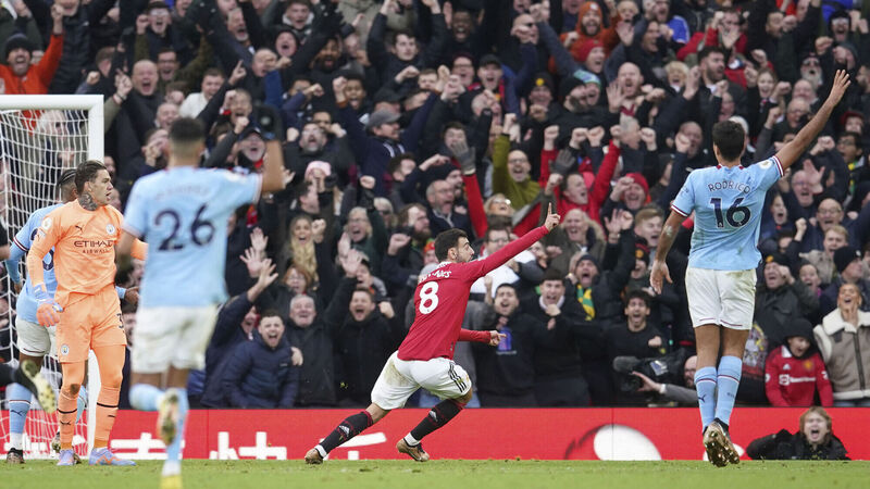 RIGHT DECISION? Manchester United's Bruno Fernandes celebrates after scoring his side's first goal. Pic: AP Photo/Dave Thompson