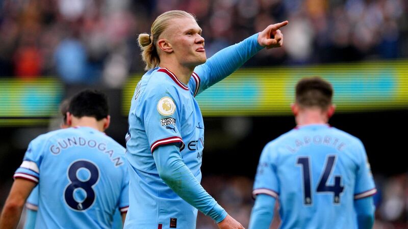 Erling Haaland’s 14-minute hat-trick was the perfect response to Pep Guardiola’s midweek meltdown as Manchester City retained their interest in the Premier League title race with an ultimately comfortable win.