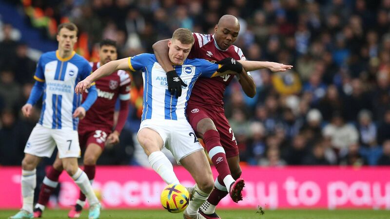 STRENGTH: Evan Ferguson of Brighton & Hove Albion is put under pressure by Angelo Ogbonna of West Ham United. Pic: Steve Bardens/Getty Images