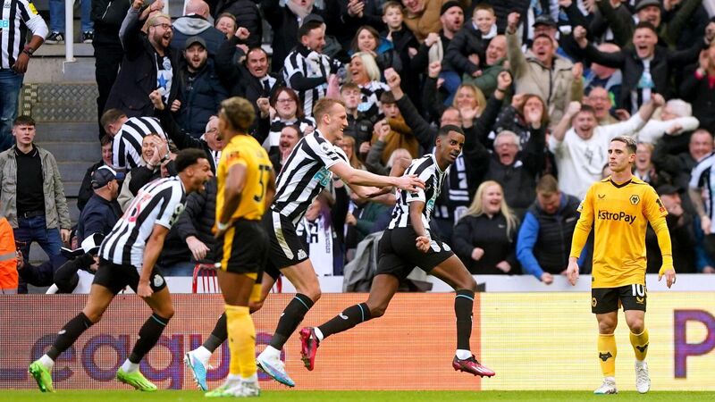 OPENER: Newcastle United's Alexander Isak celebrates scoring their side's first goal of the game during the Premier League match at St. James' Park, Newcastle. Pic: Owen Humphreys/PA Wire