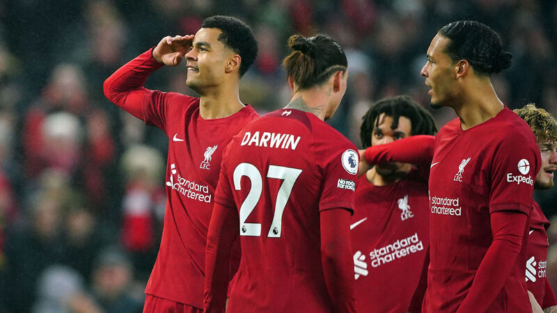SENT HOME: Liverpool's Cody Gakpo (left). Pic: Peter Byrne/PA Wire.