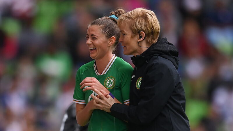 IMPACT PLAYER: Sinead Farrelly with Republic of Ireland manager Vera Pauw during the friendly game against the USA at the Q2 Stadium in Austin, Texas. Pic: Stephen McCarthy/Sportsfile